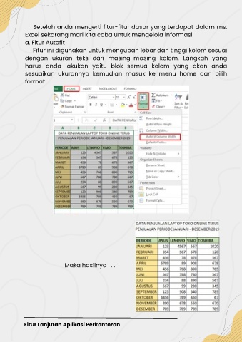 Fitur ini digunakan untuk mengubah lebar dan tinggi kolom sesuai