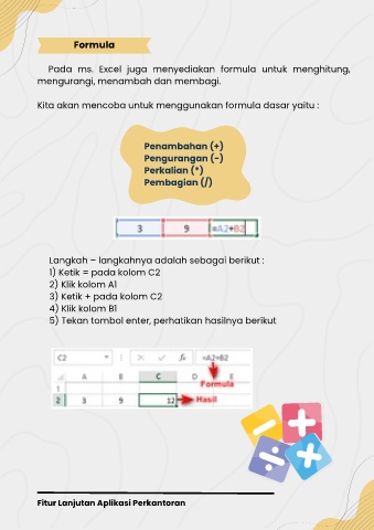 Pada ms. Excel juga menyediakan formula untuk menghitung,