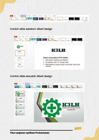 Contoh slide sebelum diberi design Contoh slide sesudah diberi design Fitur Lanjutan Aplikasi Perkantoran