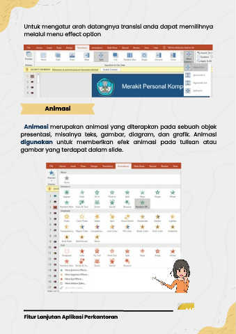 presentasi, misalnya teks, gambar, diagram, dan grafik. Animasi