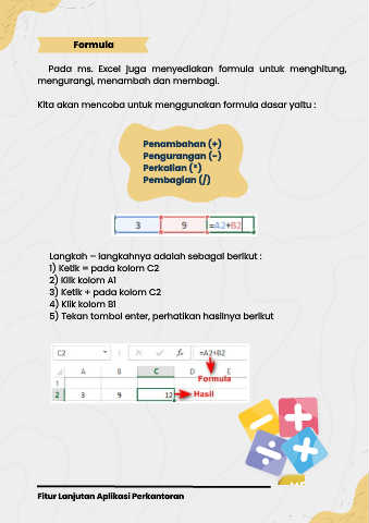 Pada ms. Excel juga menyediakan formula untuk menghitung,