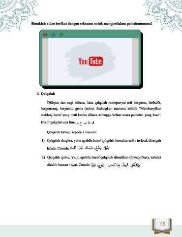 2)  Qalqalah qubra, Yaitu apabila huruf qolqolah dimatikan (diwaqofkan), terletak