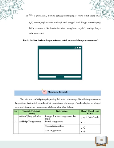 7) ة لا طتسا (Istithalah), menurut bahasa; memanjang. Menurut istilah suara dhad