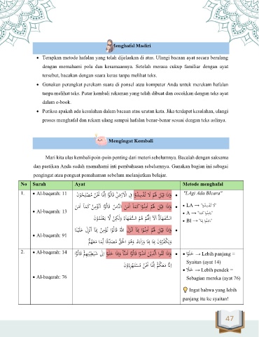 • Terapkan metode hafalan yang telah dijelaskan di atas. Ulangi bacaan ayat secara berulang