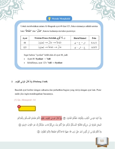 Untuk membedakan antara Al-Baqarah ayat 48 dan 123, fokus utamanya adalah urutan