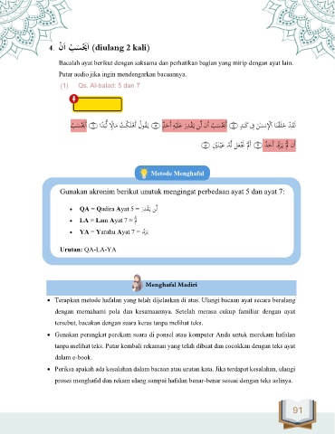tanpa melihat teks. Putar kembali rekaman yang telah dibuat dan cocokkan dengan teks ayat