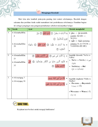 1. • Al-muthaffifin: ليو ٩ موقر م بى ـتك ٨ يجس ام كىىرد أ ٰٓ امو • يجس → ليو (pendek-