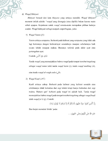 sebagai waqaf tamm ialah tanda waqaf lazim (م), tanda waqaf muthlaq (ط),