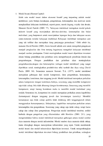 Parris, 2009: 84). Sementara menurut Stewart, T.A. (1977), modal intelektual