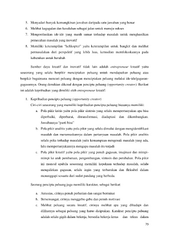 gagasannya. Orang demikian dikenal dengan pencipta peluang (opportunity creator). Berikut