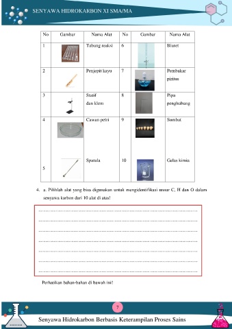 4. a. Pilihlah alat yang bisa digunakan untuk mengidentifikasi unsur C, H dan O dalam