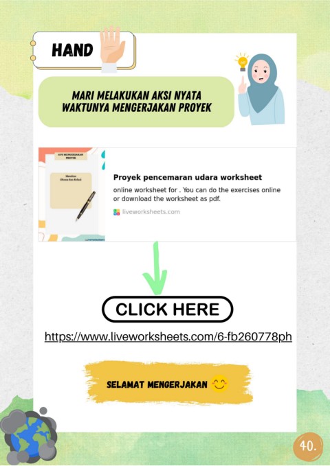 HAND MARI MELAKUKAN AKSI NYATA WAKTUNYA MENGERJAKAN PROYEK https://www.liveworksheets.com/6-fb260778ph selamat mengerjakan 40.