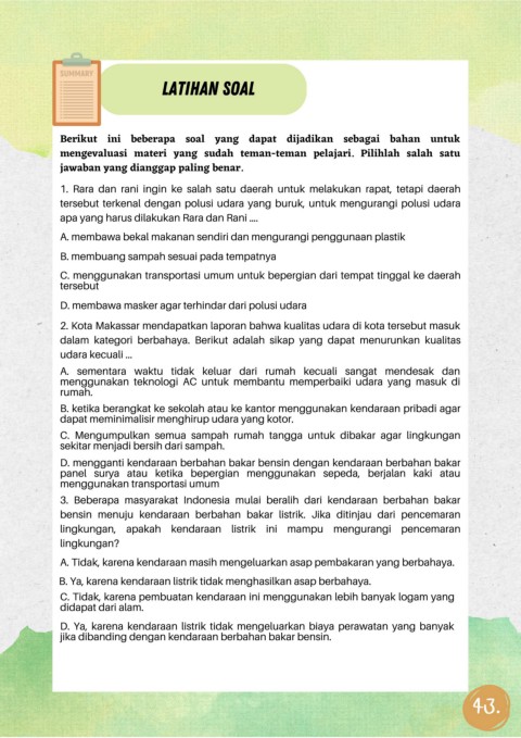 D. membawa masker agar terhindar dari polusi udara