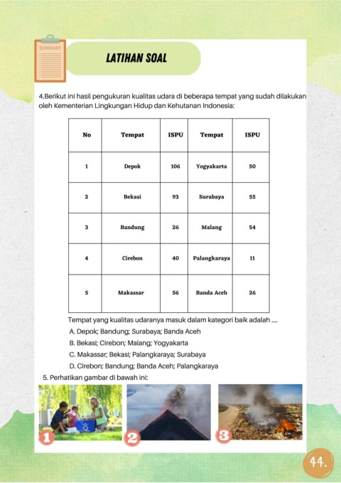 4.Berikut ini hasil pengukuran kualitas udara di beberapa tempat yang sudah dilakukan