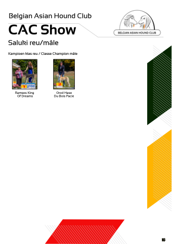 Belgian Asian Hound Club CAC Show Saluki reu/mâle Kampioen klas reu / Classe Champion mâle Ramses King Orod Hase Of Dreams Du Bois Pacie 18