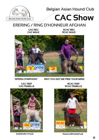 Belgian Asian Hound Club CAC Show ERERING / RING D’HONNEUR AFGHAN ISPERIA SYMPHONY CAC TEEF CAC FEMELLE WHY YOU NOT ME FREE YOUR MIND RCAC TEEF RCAC FEMELLE CAC REU CAC MALE RCAC REU RCAC MALE SUNWARD HYGGE THUJA HIPS DONT LIE 21