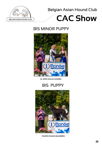 Belgian Asian Hound Club CAC Show BIS MINOR PUPPY AL HFIFA SALUK AZADEH BIS PUPPY YAZATA’S BAHA BAGHEERA 23
