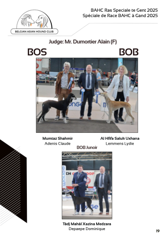 BAHC Ras Speciale te Gent 2025 Spéciale de Race BAHC à Gand 2025 Mumtaz Shahmir Adenis Claude Al Hfifa Saluk Uxhana Lemmens Lydie BOS BOB Judge: Mr Dumortier Alain (F) Tâdj Mahâl Xazina Medzara Depaepe Dominique 19 BOB Junoir