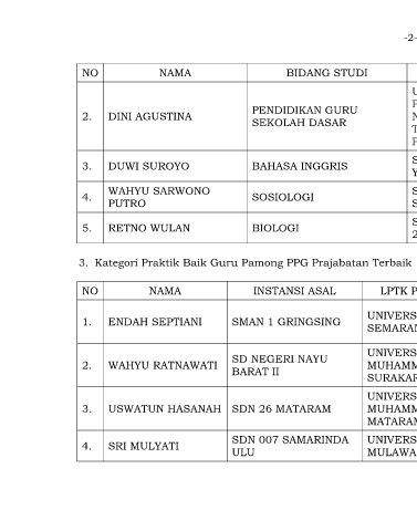 NO NAMA BIDANG STUDI INSTANSI ASAL LPTK