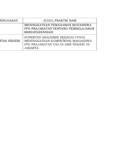 NO NAMA INSTANSI ASAL LPTK PENUGASAN JUDUL PRAKTIK BAIK
