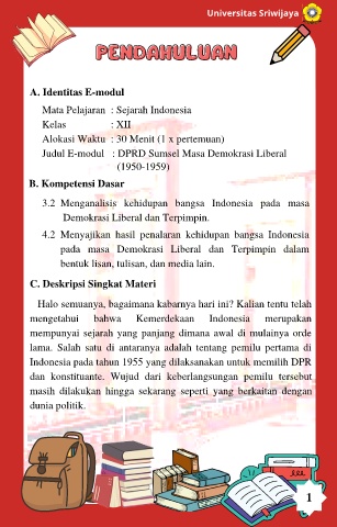 Judul E-modul : DPRD Sumsel Masa Demokrasi Liberal