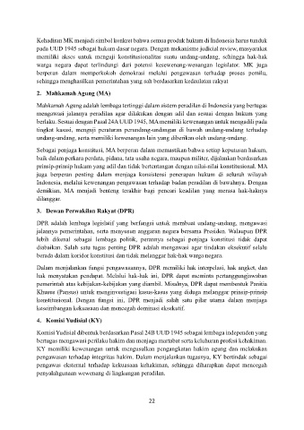 berlaku. Sesuai dengan Pasal 24A UUD 1945, MA memiliki kewenangan untuk mengadili pada