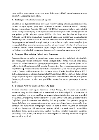 Demokrasi juga menghadapi ancaman teknis berupa serangan siber terhadap institusi politik,
