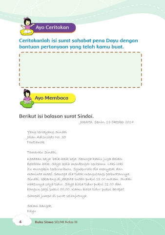 Ceritakanlah isi surat sahabat pena Dayu dengan