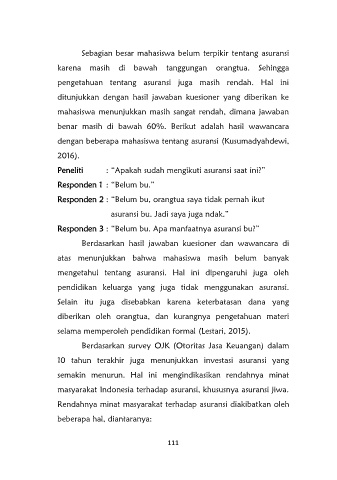 dengan beberapa mahasiswa tentang asuransi (Kusumadyahdewi,