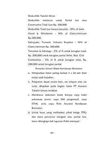 Deductible minimum untuk Partial loss atau