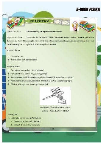 3. Tugaskan peserta didik untuk mencari titik fokus (titik api) cahaya matahari