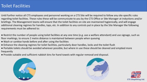 regarding toilet facilities. These rules these will be communicate to you by the CTS Office or Site Manager at inductions and/or