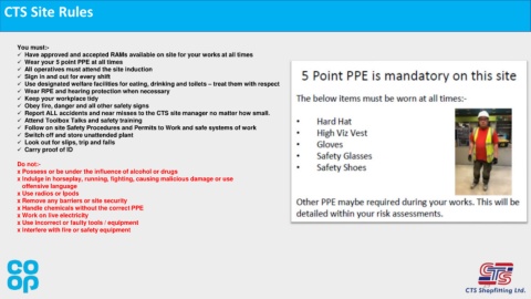 ✓ Follow on site Safety Procedures and Permits to Work and safe systems of work