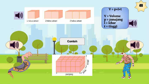 49 V = p×l×t V = Volume p = panajang l = lebar t = tinggi Contoh