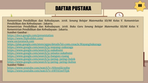 Kementrian Pendidikan dan Kebudayaan. 2018. Buku Guru Senang Belajar Matematika SD/MI Kelas V.