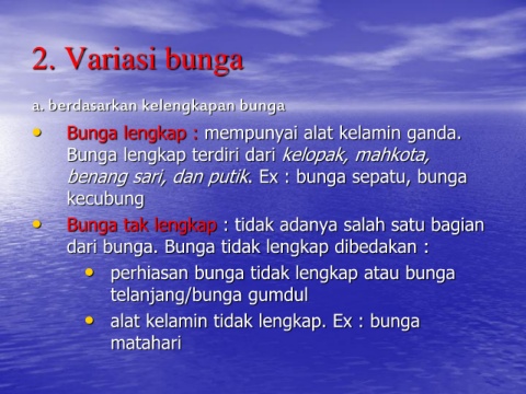 Bunga lengkap terdiri dari kelopak, mahkota,