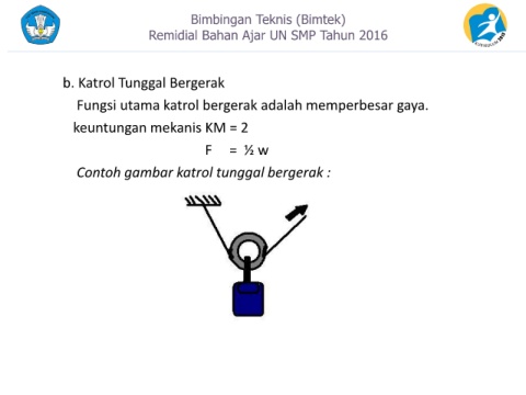 Fungsi utama katrol bergerak adalah memperbesar gaya.
