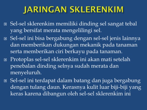 Sel-sel sklerenkim memiliki dinding sel sangat tebal