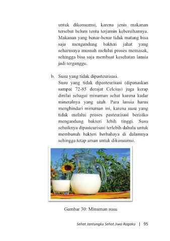 sebabnya, mereka lebih rentan terkena dehidrasi. b. Susu yang tidak dipasteurisasi.