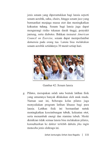 tubuh. Senam juga terbukti menjadi cara yang efektif demikian tidak semua lansia bisa melakukan pilates,