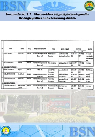 Parameter H. I.7. Show evidence of professional growth through further and continuing studies