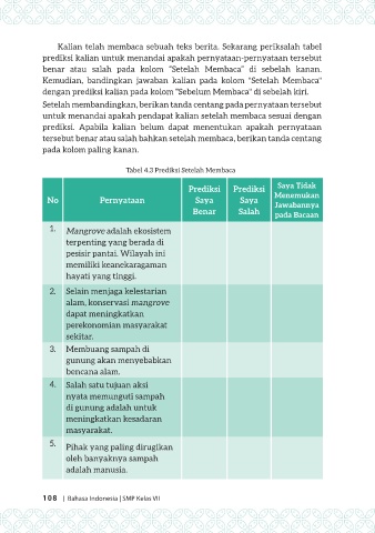 dengan prediksi kalian pada kolom "Sebelum Membaca" di sebelah kiri.