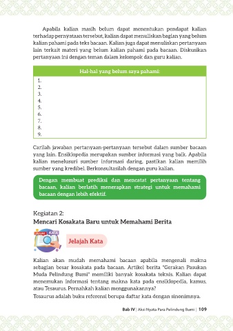 Muda Pelindung Bumi" memiliki banyak kosakata teknis. Kalian dapat