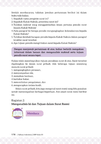 informasi dalam bacaan dan menganalisis maksud serta tujuan