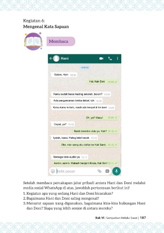 3. Menurut sapaan yang digunakan, bagaimana kira-kira hubungan Hani