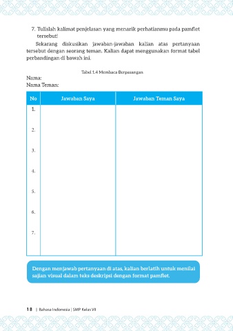 tersebut dengan seorang teman. Kalian dapat menggunakan format tabel