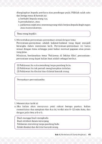 a. Jika kalian akan menyusun puisi rakyat berupa pantun, kalian