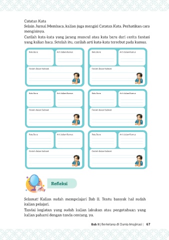Selain Jurnal Membaca, kalian juga mengisi Catatan Kata. Perhatikan cara