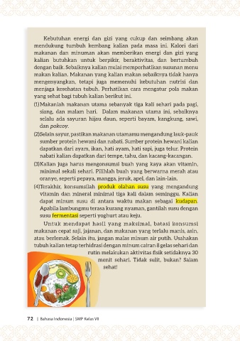makan kalian. Makanan yang kalian makan sebaiknya tidak hanya