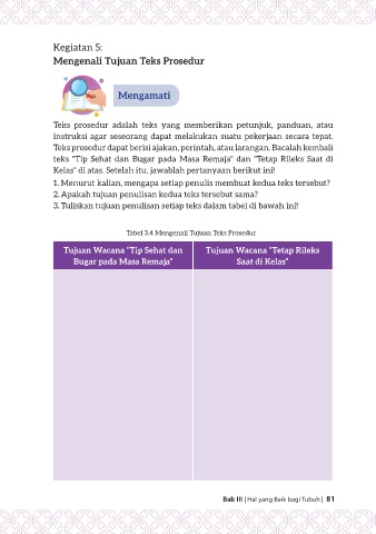 Tabel 3.4 Mengenali Tujuan Teks Prosedur